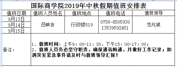 77779193永利官网2019年中秋假期值班安排表