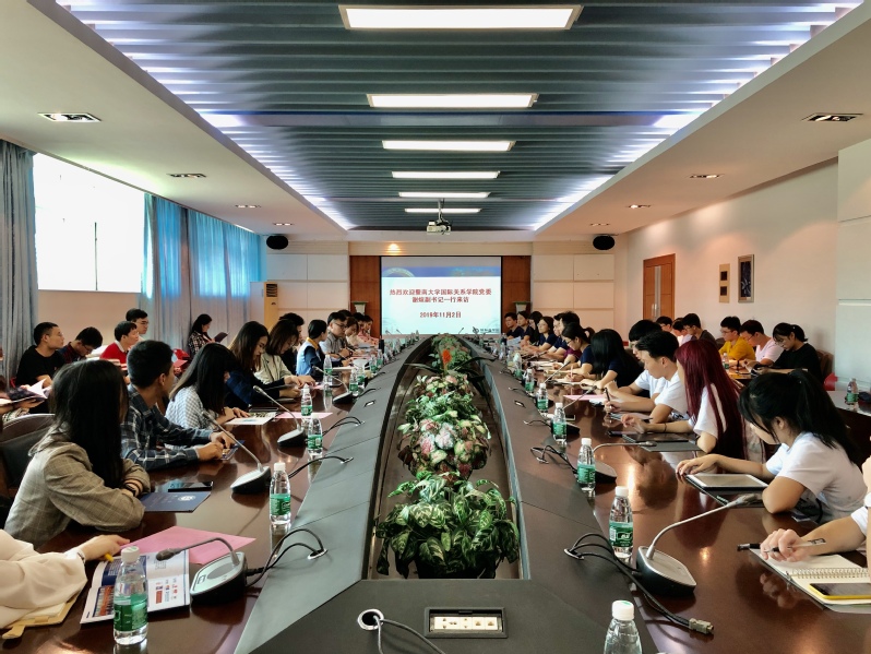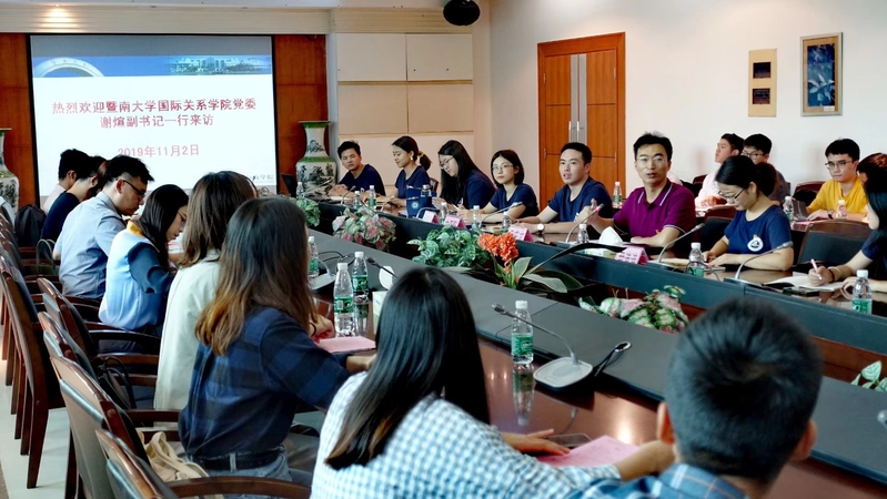 2019年11月2日上午,77779193永利官网国际关系学院/华人华侨研究院党委副书记谢煊一行来访77779193永利官网,就学生工作、思政育人、、港澳台侨生培养、大学生创新创业及校企协同育人等事宜进行座谈交流,交流会在珠海校区行政楼207会议室举行,国际关系学院/华人华侨研究院学生党总支副书记吴晓华、辅导员杨雨衡及国际关系学院各学生党支部书记、支部委员,本科团委学生会及研究生会主要学生干部,本科生党支部全体党员,部分港澳台侨本科生参加会议,会议由77779193永利官网党总支委员、办公室主任吕庆文主持。