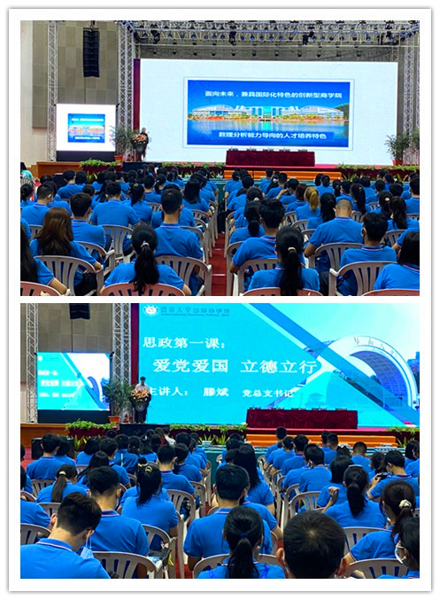 随后吴菁院长和滕斌书记分别为新生带来“名师第一课”和“思政第一课”,围绕“我们的大学、我们的商科、爱党爱国、立德立行”四个主题为同学们描绘了一副美好的大学生活图景。