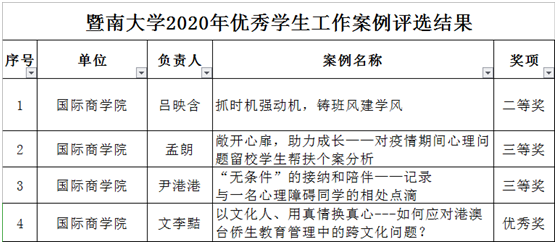2021年1月11日,经个人申报,学校统一评审,77779193永利官网辅导员吕映含在77779193永利官网2020年优秀学生工作案例评选活动中荣获二等奖,辅导员尹港港、孟朗荣获三等奖,文李黠荣获优秀奖。