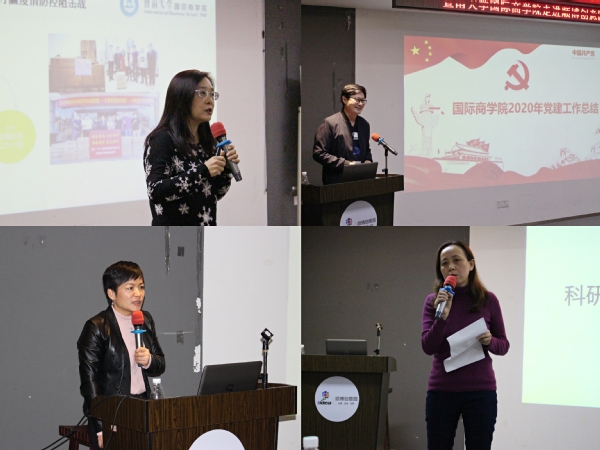 在系列活动结束后,学院召开2020年年终总结大会。滕斌书记总结了一年来学院党建工作和学生工作的相关事宜。他强调全院师生要认真贯彻落实十九届四中、五中全会精神,习近平新时代中国特色社会主义思想,毫不松懈抓好常态化疫情防控,全面加强思政建设夯实铸魂育人根基,多措并举健全组织建设优化党员培养,广开思路打造特色党建文化与品牌。吴菁院长用“克难关、结硕果、谱新章”对学院工作进行总结和展望。她表示2020年通过全院师生的共同努力,学院在教学、科研、学生、校友工作各方面均取得重大突破及丰硕成果。她重点指出,学院要以立德树人为根本、学科优化为基点、高质量、特色化发展为目标,凝心聚力推动学院建设再上新台阶。姜丽群副院长从教学改革和教学管理两方面总结一年的教学工作,并对加强课程思政建设和落实期末考试工作作出部署。王玉副院长就科研管理、研究生管理、国际合作与交流等重点工作进行总结,并提出了新一年工作重点。