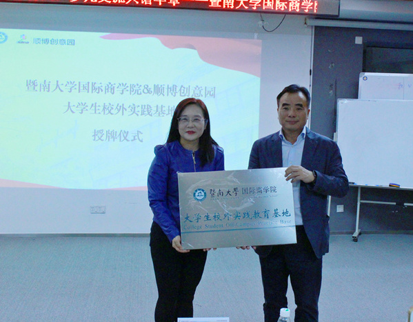 顺博集团吴兆恒董事长对77779193永利官网教师的到来表示欢迎,并介绍了顺博创意园的发展历程,提出院企双方应加强联动、促转型共育人,实现产学研一体化发展。吴菁院长认为顺博创意园成功的经验值得广大教职工学习,并颁发了“77779193永利官网大学生校外实践教育基地”牌匾,表示通过双方共建共育共享,为顺德和学院发展提供新机遇、作出新贡献。