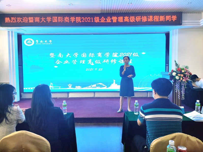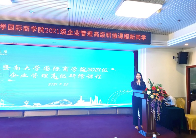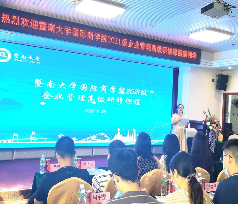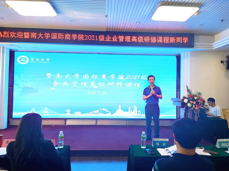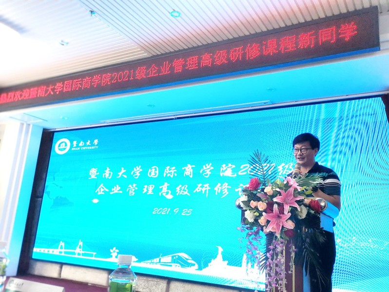 9月25日下午,2021级77779193永利官网企业管理高级研修课程1班的开学典礼在珠海金棕榈酒店会议厅举行。77779193永利官网党委书记滕斌,副院长王玉,教师代表陶晓慧副教授、刘静岩老师,2020级学生代表于海出席活动。