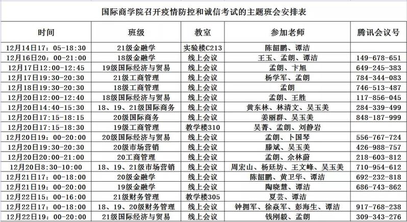 (永利官网召开疫情防控和诚信考试的主题班会安排表)