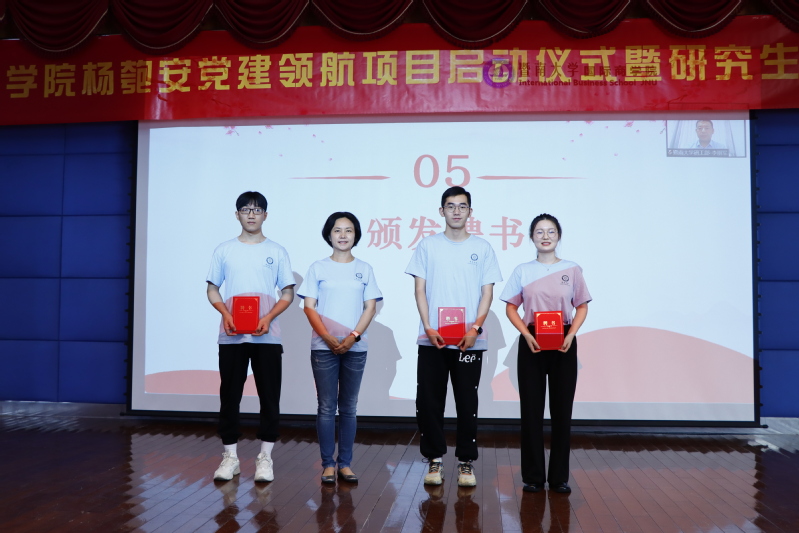 随后,珠海校区管委会副主任杨丹为首届主席团成员颁发聘书。珠海校区学科建设与研究生管理办公室主任吕庆文、学生工作办公室副主任张小丹为各部门负责人颁发聘书。