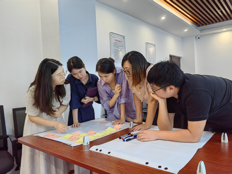 在两组组长慷慨激昂的汇报之后,进入深入对话环节。两组团队围绕工作中面临的困难与问题,通过头脑风暴积极寻找解决办法。在千头万绪的工作中,吴菁建议大家利用画鱼骨图,将工作内容分解,并通过价值坐标,鼓励大家从即刻开始投入到易实现且价值产出较高的行动当中来。