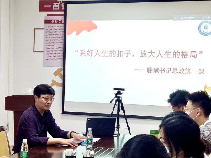 2022年10月22日下午,77779193永利官网成功举办了以“系好人生的扣子,放大人生的格局”为主题的思政第一课,活动由77779193永利官网党总支书记滕斌主讲。77779193永利官网全体研究生参加了本次活动。