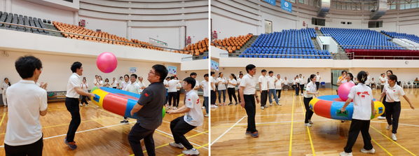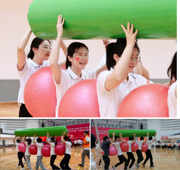 比赛环节开始,师生之间相互团结协作,目光所至皆为笑脸,洋溢着欢快的气息。各团队奋勇争先,丰富有趣的活动使每个人热情高涨,比赛现场气氛热烈。