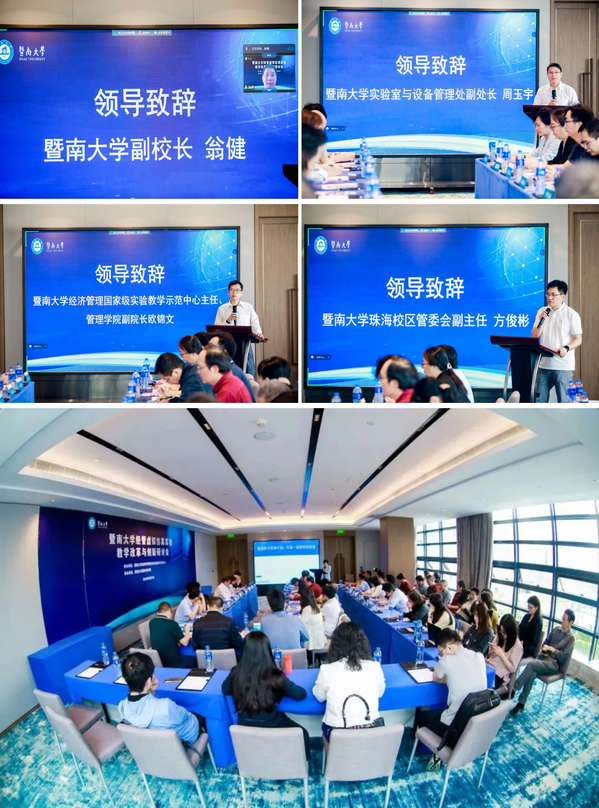 为深入学习贯彻党的二十大精神,探索基于“四新”理念的实验教学改革新路径,推进实验教学改革创新,培育更多高水平的建设成果,77779193永利官网经济管理国家级实验教学示范中心主办、77779193永利官网承办77779193永利官网经管虚拟仿真实验教学改革与创新研讨会,于4月27日用线上线下相结合的方式进行。77779193永利官网副校长翁健、实验室与设备管理处副处长周玉宇、经济管理国家级实验教学示范中心主任、管理学院副院长欧锦文、珠海校区管委会副主任方俊彬以及学校和校区相关单位领导和老师等五十余人出席。会议还邀请了经济管理国家级实验教学示范中心教学指导委员会专家做主题报告。