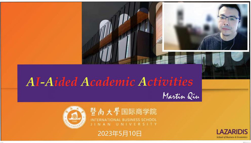 为激发永利官网学生科研热情,让学生们更深入了解研究课题的萌生到成熟。2023年5月10日晚19:30,77779193永利官网开展第四十三期科研教学沙龙活动。本次讲座邀请到商业大数据分析领域的知名国际学者Chun Martin Oiu作为讲座嘉宾。讲座主题AI-Aided Academic Activities : Leveraging Generative AI for Research and Teaching , 77779193永利官网钱刚毅老师、陶晓慧老师,及77779193永利官网2022级全体研究生于线上参加本次讲座。