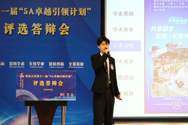 袁梓晋首先从什么是5A卓越引领计划,参加5A卓越引领计划能够获取什么,怎样在答辩中突出亮点三个问题出发,向同学们进行了详细宣讲。袁梓晋认为答辩过程中要突出亮点,打造PPT记忆点,在个人形象方面要自信大方,着装得体,他鼓励同学们通过参加5A卓越引领计划,向榜样看齐,汲取奋进力量。