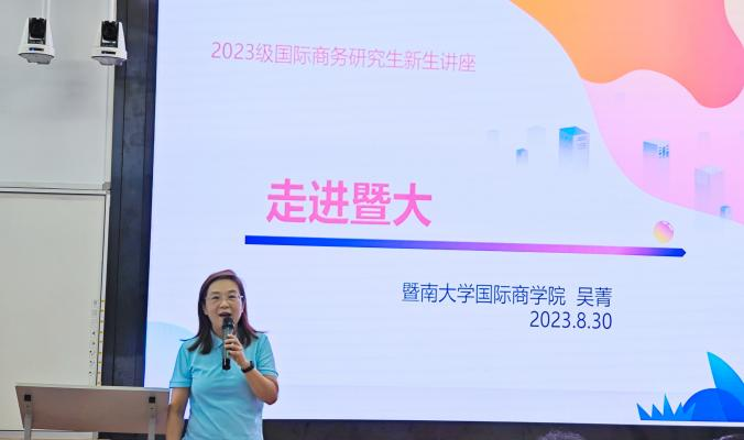 辅导员吕映含作学业及安全教育。吕映含从学业规划、在校安全、心理健康等各方面进行新生教育,引导新生通过加强与导师、同学、师兄师姐的联系,更快适应研究生生活,并祝愿同学们在暨南园度过充实的研究生生涯。