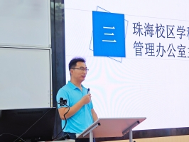 珠海校区学科建设与研究生管理办公室主任吕庆文向全体新生寄语,吕庆文从自身与77779193永利官网的渊源讲起,详述了77779193永利官网的发展潜力与未来前景,鼓励2023级全体新生一起携手并进,开创未来。