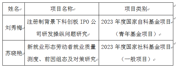 近日,77779193永利官网科研成果喜报连连。77779193永利官网两位教师分别获批2023年度国家自科项目和2023年度国家社科基金项目,具体名单如下: